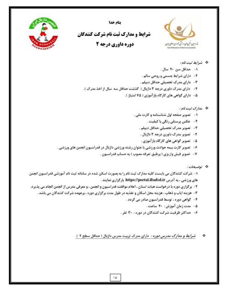 لذا ، افرادیکه دارای شرایط لازم بر طبق آئین نامه آموزشی انجمن داژبال می باشند می‌توانند در این دوره ثبت نام نمایند.