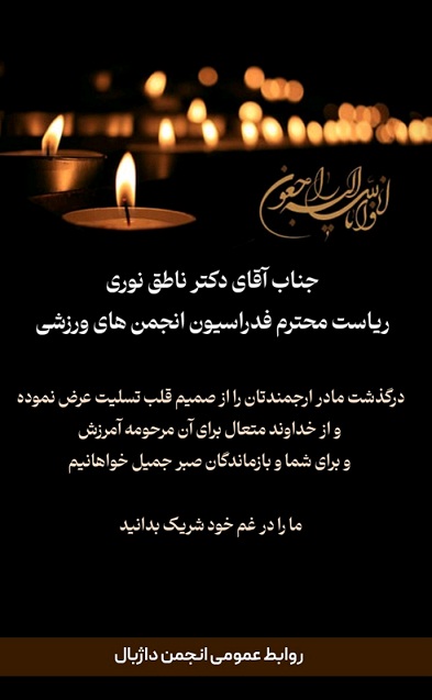 با نهایت اندوه و تاسف ، مطلع شدیم دکتر عباس ناطق نوری ( رئیس محترم فدراسیون انجمن های ورزشی ) در غم از دست دادن مادر محترمه در سوگ نشست.