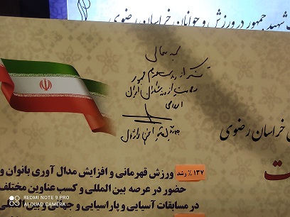 در این مراسم پر ارزش که با حضور مدیرکل ورزش و جوانان ، معاون استاندار و جمعی از مسئولین و قهرمانان ورزشی در محل سالن جلسات اداره کل ورزش و جوانان استان خراسان رضوی برگزار گردید ، از دستاوردهای دولت شهید جمهور در حوزه ورزش و جوانان تقدیر و از قهرمانان و تلاشگران چندین رشته ورزشی تجلیل بعمل آمد.